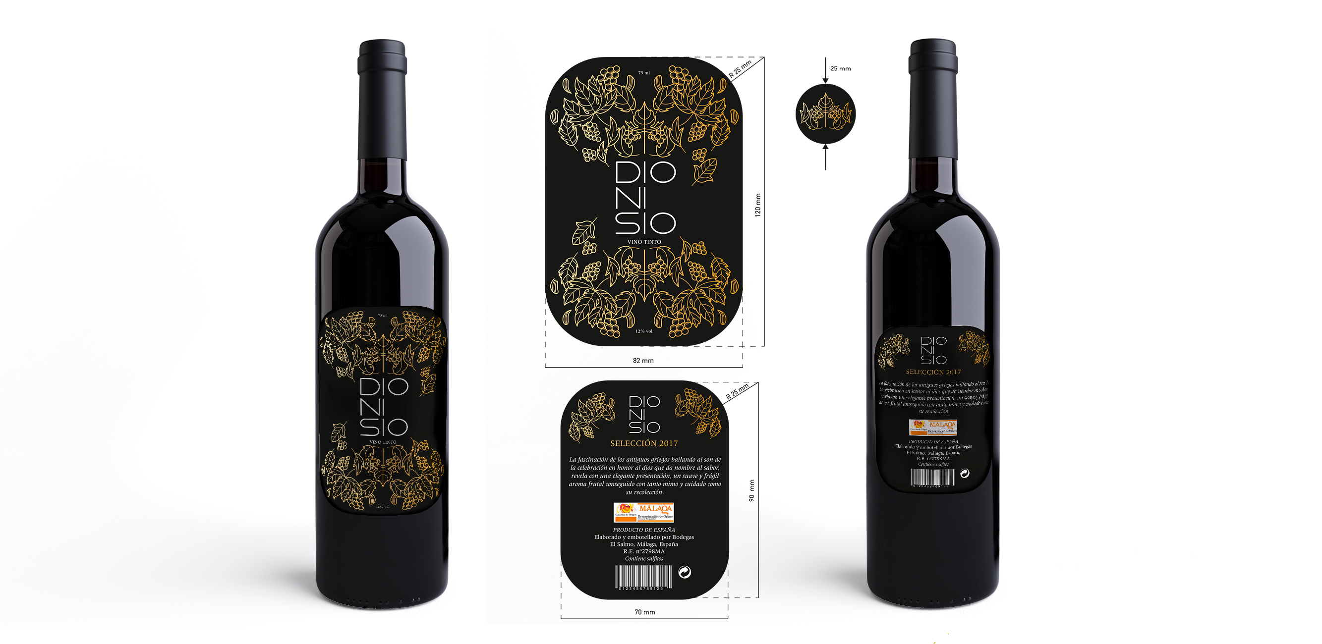 Vino tinto malagueño, elegante y sofisticado, dirigido a un consumidor de un nivel cultural alto y buen gusto.